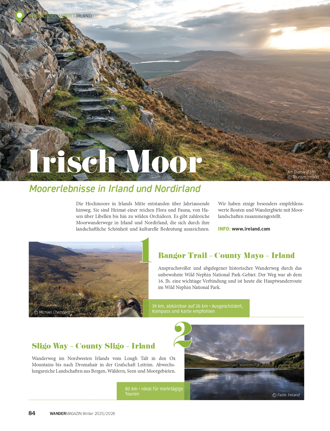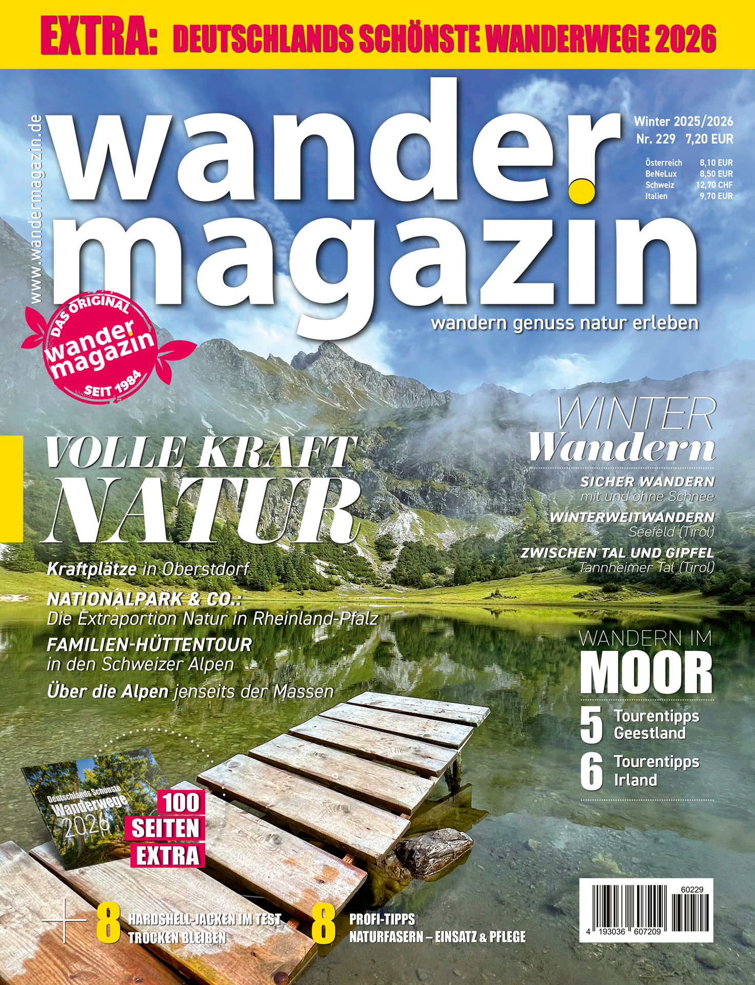 Thema: Wanderziele: Auf geht's ins winterliche Österreich, ob ins Tannheimer Tal, nach Seefeld in Tirol, nach Lech Zürs, ins Großarltal sowie den Nationalpark Hohe Tauern oder auf zertifizierten Winterwanderwegen durch die Alpenrepublik. Außerdem widmen wir uns dem Moorwandern im Geestland sowie dem Bourtanger Moor - Veenland & Hümmling und spannenden Moorerlebnissen in Nordirland und Irland. Unser Chefredakteur Thorsten Hoyer erkundet dazu den saarländischen Bliessteig, Deutschlands Schönste Mehrtagestour 2025.